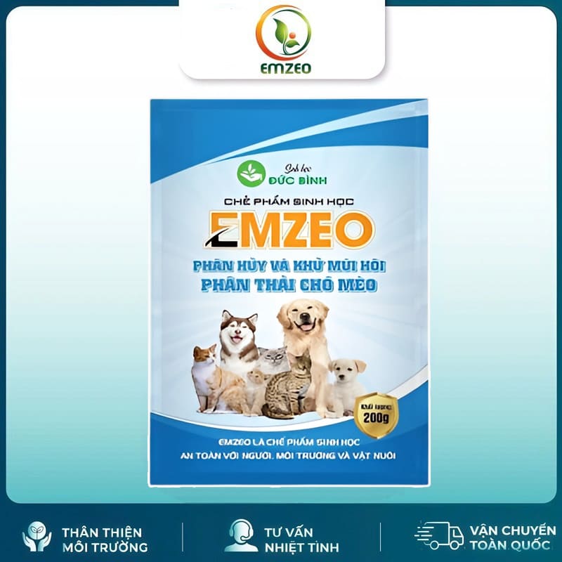 Khử mùi hôi chó mèo và thú cưng Emzeo chó mèo là men vi sinh với chức năng phân hủy, khử mùi hôi từ phân thải của thú cưng. Đây là dòng chế phẩm sinh học nên rất an toàn đối với con người, vật nuôi cũng như bảo vệ môi trường cực tốt!