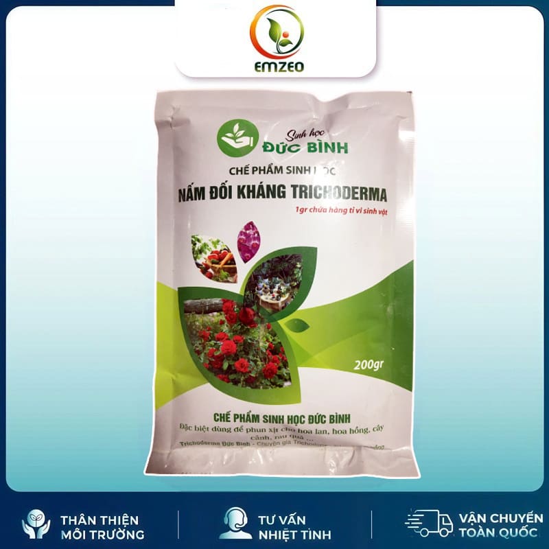 Trichoderma tưới gốc Đức Bình là dòng sản phẩm chứa hàng tỉ các bào tử nấm đối kháng trichoderma. Là biện pháp hữu hiệu bậc nhất dùng để thay thế những loại thuốc sinh học có hại cho sức khỏe, môi trường. Chế phẩm tan trong nước, dùng để trị triệt để nấm, kích thích cho cây trồng phát triển. Sản phẩm phun xịt cho hoa lan, hoa hồng, cây cảnh, rau quả,…